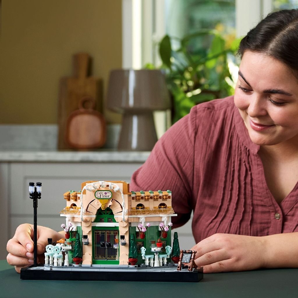 Ontspan je en haal een stukje Franse charme in huis met deze verzamelset, ontworpen voor volwassen liefhebbers van Lego bouwsets, eten en reizen. Een bouwbaar trottoir met een klassieke straatlantaarn vormt het toneel voor Café Fleur met een pittoreske gevel, sierlijke stoelen, hangende bloempotten en dubbele deuren die open kunnen. Binnen vind je een gezellig interieur met chic behang en donkere houten meubels. Dit model zit boordevol slimme details en accessoires, zoals croissants, kopjes, een krant en een kassa en straalt de sfeer uit van een klassieke Franse bistro. Het slanke profiel en de platte achterkant maken het heel geschikt om op een plank neer te zetten. Ontdek de reeks creatieve bouwsets voor volwassenen. De Builder app bevat een 3D-versie van de bouwinstructies die bij deze decoratieve bouwset voor verzamelaars horen.