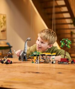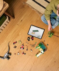 Dit dinosauruscadeau voor jongens en meisjes bevat voorgevormde Titanosaurus en Velociraptor speelgoedfiguren en 3 minifiguren van Zora Bennett, Martin Krebs en dr. Henry Loomis. De Velociraptor heeft een beweegbare kaak en de Titanosaurus heeft een beweegbare nek, kop en staart. De interactieve speelset is inclusief een oplaadstation, terreinwagen met aanhanger, etui met 3 injectiespuiten, motor, bouwbare drone, kampeerterrein met vallende boomfunctie en meer. De bouwset is gemakkelijk mee te nemen naar speelafspraakjes en kan ook worden gecombineerd met andere Jurassic World sets (apart verkrijgbaar). De Builder app begeleidt jonge fans op een intuïtief bouwavontuur, waarbij ze kunnen inzoomen en modellen in 3D kunnen draaien, sets kunnen opslaan en hun voortgang kunnen bijhouden. De set bevat 582 onderdelen.