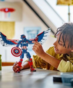 Voor deze versie van de Marvel supersoldaat neemt de gevleugelde Falcon de rol van Captain America op zich, wat de speelervaring van kinderen een extra dimensie geeft. Het bouwbare superheldenspeelgoed is ca. 28 cm hoog en heeft beweegbare schouder-, arm-, heup- en beengewrichten, zodat kinderen hun model in allerlei realistische actiehoudingen kunnen zetten. Op de rug van de figuur zijn grote folievleugels bevestigd. De vleugels kunnen worden gebogen om fladderen na te bootsen en kunnen eenvoudig worden verwijderd als de actie op de grond plaatsvindt. De Captain America figuur draagt zijn bekende schild en draagt een afneembare Redwing drone op zijn rug. Voor nog meer digitaal plezier kunnen bouwers inzoomen, sets in 3D draaien en hun voortgang bijhouden met de leuke, intuïtieve Builder app. 359-delig. Geschikt voor kinderen vanaf 8 jaar.