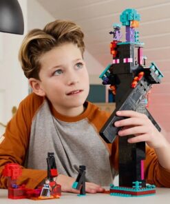 HetLego Minecraft 21279 De Enderman Toren bouwpakket voor kinderen is de ideale verrassing voor jongens en meisjes die van bouwen, rollenspellen en het Minecraft spel houden. Het hoofdmodel is een toren in de vorm van een Enderman met een Nether-portaal in het hoofd, een balkon op elke schouder en 2 kamers met een werkbank, een betoverblok en een opbergdoos voor Enderparels. Ladders bieden toegang tot de benen, de armen zijn volledig verstelbaar en buiten vind je elementen uit het verwrongen bos-bioom en het helrode bos-bioom. De set bevat Minecraft minifiguren van een Dimensionale verdediger, Rijkridder en 2 Endermannen, plus 2 Endermite mobs figuren. Wapens zijn een Minecraft kruisboog en een Netherieten speelgoed zwaard en schild. Het Enderman torenmodel kan worden omgebouwd tot 2 forten met kleurcodering, ideaal voor PvP-actie (speler tegen speler). Je kunt ook bouwen met behulp van de Builder app. Dankzij het modulaire ontwerp is dit Minecraft speelgoed voor kinderen van 9 jaar en ouder een ideaal cadeau voor gamers, jongens en meisjes die dol zijn op de Minecraft game en bouwen.