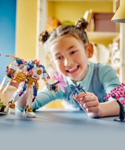 De coole mech heeft verstelbare armen en benen die kinderen naar alle kanten kunnen draaien, plus een groot zwaard, een draaiend zaagblad en een cockpit waarin een ninja minifiguur kan worden geplaatst. Met deze unieke aanpasbare actiefiguur kunnen kinderen hun eigen mecha ontwerpen! De afneembare benen, armen en borst kunnen worden gecombineerd met onderdelen van 2 andere mecha: Cole’s elementaire aardemecha (71806) en Kai’s elementaire vuurmecha (71808) (apart verkrijgbaar). Kinderen kunnen urenlang plezier beleven terwijl ze onderdelen mixen en matchen om een unieke actiefiguur te maken. Dit leuke ninja speelgoed wordt geleverd met 2 minifiguren: Sora met 2 mini katana’s en een Wolvenmasker klauwstrijder en is een leuk cadeau voor kinderen. De mech set kan ook worden gemaakt met behulp van de Builder app, die jou en je kind begeleidt op een eenvoudig en intuïtief bouwavontuur. Bevat 209 onderdelen. Geschikt voor kinderen vanaf 7 jaar.