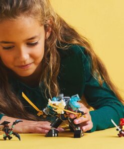 Deze bouwset voor kinderen bestaat uit eenNinjago mecha met verstelbare armen, benen en handen, een bovenlichaam dat 360 graden kan draaien, een borstkas die open kan om een minifiguur in te plaatsen en 2 grote zwaarden. Deze speelset bevat 3 minifiguren vanNinjago personages: Zane met 2 shuriken, Wyldfyre met een kristallen katana en Drix, de Meester van Zwermen van de Verboden Vijf, met 2 sikkels zodat kinderen kunnen genieten van urenlange rollenspelavonturen in deNinjago wereld. HetNinjago assortiment met bouwbaar actiespeelgoed omvat mecha, draken en tempels waarmee fans de actie kunnen naspelen. Elke ninjaspeelset kan in elkaar worden gezet met behulp van de Builder app, die jou en je kind begeleidt op een eenvoudig en intuïtief bouwavontuur. Geschikt voor kinderen vanaf 6 jaar.