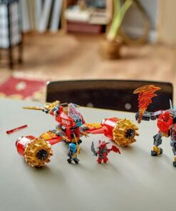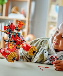 Kinderen kunnen het actiespeelgoed opdelen in 2 kleinere voertuigen: Kai’s mecha met een verstelbaar hoofd, armen en benen, een cockpit en een groot stormzwaard, plus Nya’s vliegende motor met een cockpit, beweegbare vleugels en 2 schieters met veermechanisme. Deze ninjaspeelset wordt geleverd met 3Ninjago minifiguren: Kai met 2 kristallen katana’s, Nya met 2 gouden katana’s en een gemene Draconische strijder met een eigen zwaard, zodat kinderen epische confrontaties kunnen naspelen. HetNinjago assortiment met bouwbaar ninjaspeelgoed omvat draken, voertuigen en tempels, zodat fans avonturen kunnen naspelen met hun helden. Elke ninjaspeelset kan in elkaar worden gezet met behulp van de Builder app, die jou en je kind begeleidt op een eenvoudig en intuïtief bouwavontuur. Geschikt voor kinderen vanaf 7 jaar.