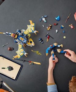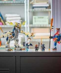 De mecha heeft beweegbare armen en benen, een zwaard en een borstkas die open kan met ruimte voor een minifiguur. De draak heeft beweegbare vleugels, kop, kaak, benen en staart, plus een zwaard. Er zijn 4 minifiguren: de ninja’s Rogue en Arin en het duo Rox en een Draconische geeststrijder, met een banier met een geheime boodschap die alleen kan worden gelezen met Arins onthullingszwaard. Kinderen kunnen de mecha van de Kai’s mechastormvoertuig (71830) en Kai’s Mech Rider EVO (71783) speelsets (apart verkrijgbaar) op de rug van de draak uit deze set bevestigen. Deze speelset kan worden gebouwd met behulp van de Builder app, die jou en je kind begeleidt op een bouwavontuur. De set bevat 584 onderdelen. Geschikt voor kinderen vanaf 8 jaar.