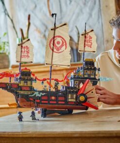 Dit grote en zeer gedetailleerde Bounty schip is het nieuwste model in een reeks beroemde schepen en zit boordevol coole kenmerken en functies. Inclusief een displaystandaard. Dit bouwpakket voor kinderen bevat alles wat ninjafans nodig hebben om verhalen uit seizoen 3 van deNinjago Dragons Rising tv-serie na te spelen: een tandwiel om de zeilen te openen en te sluiten, afneembare daken en vloeren om toegang te krijgen tot het interieur van de speelgoed boot. Er is zelfs een sushibar en een tafel in de hoofdcabine die kan worden opgeklapt om een geheime computer te ontdekken. De set is inclusief 6 minifiguren van personages Zane, Cole, Wyldfyre, Nya, Rogue en de gemene Zarkt, die allemaal gewapend zijn met coole ninjawapens. De ninja’s delen een doorschijnend onthullingszwaard dat ze helpt om een geheime kaart op de tafel van de kapitein te onthullen.