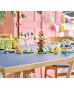 Zet de boom, de kar, de vogel en het konijn in elkaar, bouw de felgekleurde eieren en bevestig ze aan de boomtakken zodat de dieren ze kunnen gaan zoeken. Help het kuiken en de Paashaas om de eieren te verzamelen met behulp van het net en bewaar ze in de kar. Op zoek naar een paasknutsel? Deze paaseitjes set met leuke dieren figuren is het ideale cadeau om te knutselen voor kinderen en volwassenen om alleen of met familie of vrienden te bouwen. Geschikt voor kinderen vanaf 8 jaar.