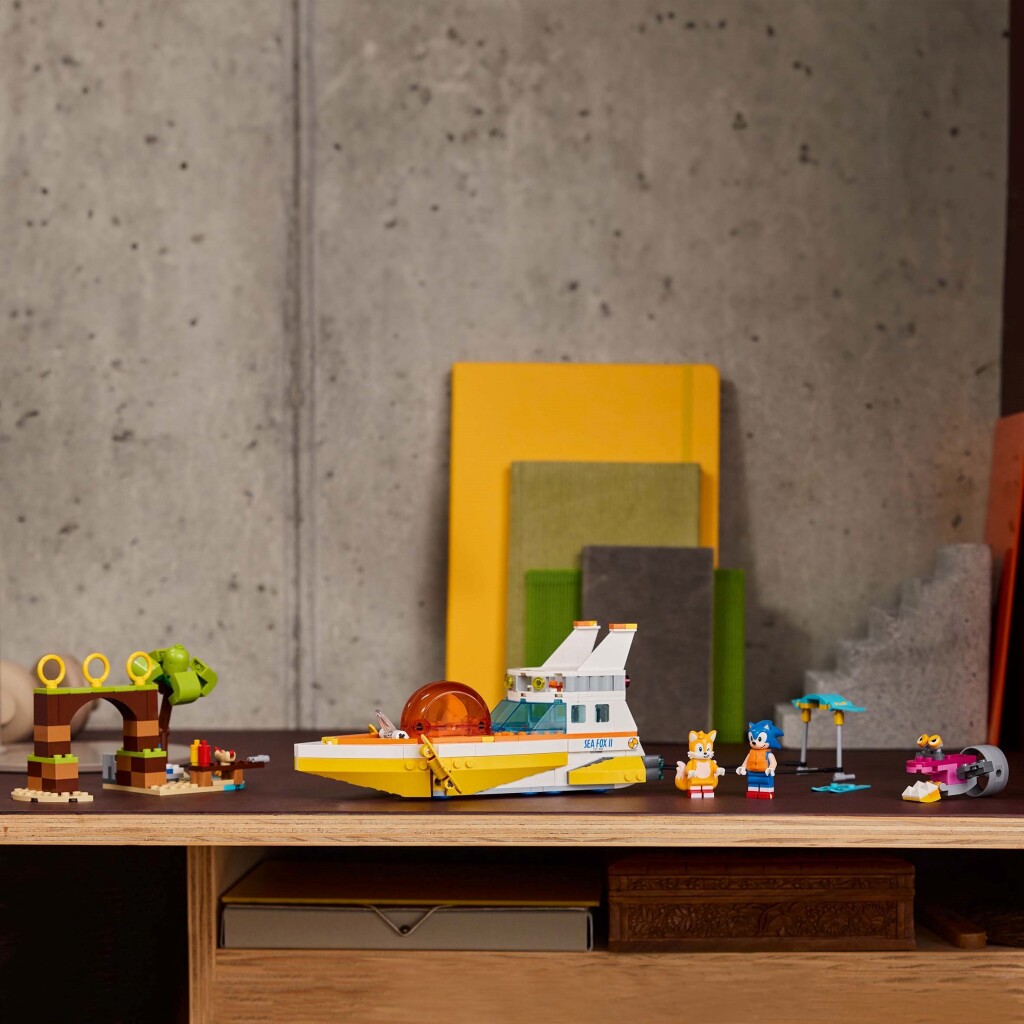 Deze Lego Sonic the Hedgehog speelgoedset bestaat uit een boot met een ingebouwde snelheidsbollanceerder aan de voorkant, een karaokemachine en een dansvloer, plus parasail-aansluitingen aan de achterkant. Ook inclusief 4 personages, een eilandmodel met 3 ringen, een boog, een strandstoel en andere accessoires. Met dit coole Sonic speelgoed kunnen fans van de Blauwe Waas eindeloze verhalen bedenken met Sonic en Tails: van een feestje op de boot met dansen, karaoke, waterskiën en parasailing tot ontspannen op het eiland nadat ze Jawz hebben verslagen en een Tocky hebben gered. Snelle actie en fantasierijk spel gaan hand in hand met Sonic the Hedgehog speelgoed. Kinderen kunnen ook genieten van een eenvoudig en intuïtief bouwavontuur met de Builder app. Hiermee kunnen ze inzoomen en hun modellen in 3D draaien, sets opslaan en hun voortgang bijhouden. 393-delig. Geschikt voor kinderen vanaf 8 jaar.