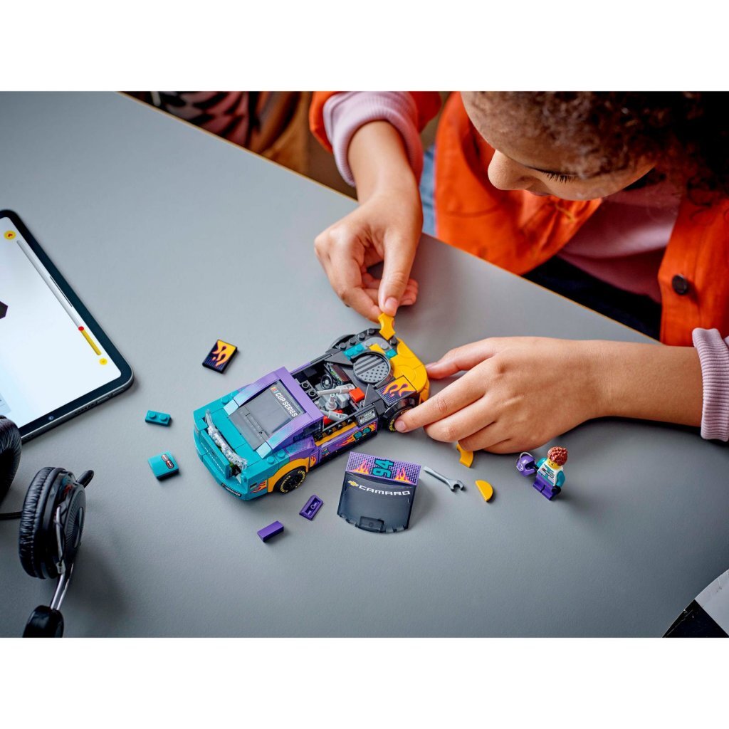 Deze krachtige raceauto, versierd met levendige kleuren en vlammen, bevat ontwerpdetails van echte auto’s die racen in deNascar Cup Series. DeNascar speelgoedauto heeft realistische kenmerken, zoals de achterspoiler, grille, motorkap, koplampen en wielen, een interieur met een rolkooi, dashboard, versnellingspook en brandblusser en authentieke Camaro, Cup Series enNascar logo’s. De speelset is inclusief een minifiguur van eenNascar coureur die kinderen achter het stuur kunnen plaatsen om spannende races na te spelen. Met Speed Champions autospeelgoed kunnen kinderen en autoliefhebbers hoogwaardige replicaversies bouwen van bekende voertuigen. Elk automodel kan worden gemaakt met behulp van de papieren instructies of de Builder app. 328-delig. Geschikt voor kinderen vanaf 9 jaar.
