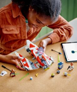 Dit Star Wars bouwpakket voor kinderen bevat een starfighter met een cockpit die open kan, 2 schieters met veermechanisme en een intrekbaar landingsgestel. Er zijn 2 Star Wars minifiguren: Jedi Bob en een Ackbar Trooper, plus een droid figuur van Servo (SR-V0), zoals te zien in de Star Wars: Rebuild the Galaxy Disney+ special. Accessoires zoals het lichtzwaard van Jedi Bob, dat aan de basis van het bouwbare speelgoed ruimteschip kan worden geklikt, en een pak blauwe melk en banaan die beide in het opbergvak passen, dragen bij aan het plezier. Dit bouwbare Star Wars speelgoed voor kinderen om te verzamelen is goed te combineren met de 75389 Dark Falcon en 75393 TIE Fighter en X-wing combi sets (apart verkrijgbaar), die ook voertuigen en personages uit de Star Wars: Rebuild the Galaxy special bevatten. De set is een cool Star Wars cadeau voor fans vanaf 8 jaar. Bevat 305 onderdelen.