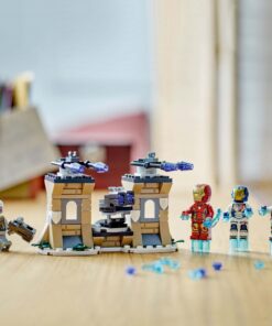 Deze bouwbare superheldenspeelset zit boordevol coole functies en accessoires en is geweldig bouwspeelgoed voor kinderen en Avengers fans. De set is inclusief 4 minifiguren: Iron Man, 2 Iron Legionnaires en een Hydra Trooper. Iron Man heeft een vizier dat open kan en een powerblaster. De Hydra Trooper heeft een noppenschieter. Er worden helderblauwe stenen meegeleverd zodat het lijkt alsof de minifiguren vliegen. In de bouwbare Hydra basis zijn 2 noppenschieters bevestigd op de draaibare vloer, waar kinderen de Hydra Trooper kunnen neerzetten om de superhelden aan te vallen. Op de torens van de basis bevinden zich 2 niet-werkende schieters ter verdediging. Extra digitale functies zijn te vinden in de Builder app. 135-delig. Geschikt voor kinderen vanaf 6 jaar.