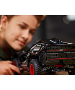 Tijdens het bouwen krijgen kinderen inzicht in de echte elektrische auto die Audi heeft ontworpen om de barre woestijnomstandigheden van de Dakar-rally te trotseren. Dit model bevat veel realistische details, zoals de onafhankelijke vering op elk van de 4 wielen van de auto. Het heeft ook een nieuw Technic wielelement dat speciaal voor dit model is ontworpen.Kinderen kunnen de auto op de proef stellen door de auto te besturen, vooruit en achteruit te laten rijden met de CONTROL+ app. Geschikt voor kinderen vanaf 10 jaar.