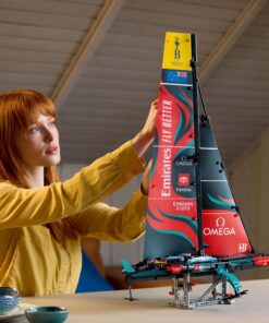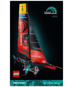 Laat je liefde voor zeiljachten aan iedereen zien met een uitdaging die je meeneemt naar het hart van de historische America’s Cup. Stel je voor dat je deel uitmaakt van het team terwijl je de vernuftige kenmerken van dit gedetailleerde Technic Emirates Team New Zealand AC75 jacht bouwt. Zet het jacht in elkaar en bevestig de 2 zeilen om de authentieke 3D-vorm te creëren. Test de pneumatische functie om de hydrofoil cant-armen van de draagvleugelboot op te pompen, precies zoals het team dat doet. Bewonder de belangrijke foilvleugels die het echte jacht voorzien van de stabiliteit, hoogte en snelheid die nodig zijn om op het hoogste niveau te racen. Probeer de bediening van de grootschoot en de fokkeschoot van deze modelboot uit en bekijk vervolgens de draaiende mast, die wordt ondersteund door de tuigage. Deze boot set maakt deel uit van een verzameling voor volwassenen en is een leuke creatieve hobby en een geweldig cadeau voor hem of haar, iedereen met een passie voor zeilboten. Na het bouwen kan dit bouwpakket voor volwassenen gebruikt worden als fraaie kantoor decoratie of woonaccessoire. Bevat 962 onderdelen.
