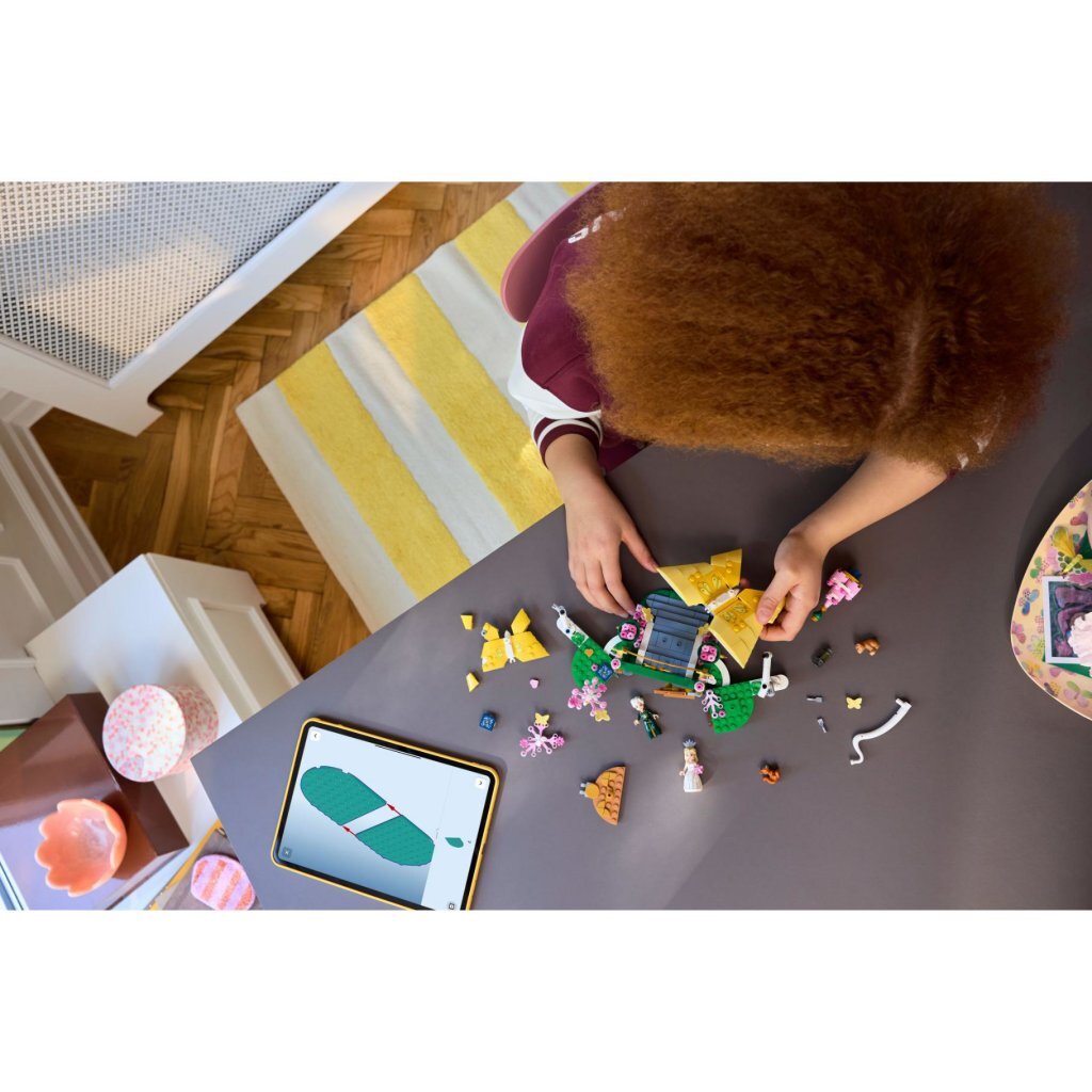 Fans van Wicked kunnen deze prachtige set bouwen en de dramatische scène uit Wicked: For Good naspelen waarin Glinda zich klaarmaakt om met Fiyero te trouwen. Kinderen duwen de grote speelgoedvlinders uit elkaar om de trouwscène te onthullen. Dit cadeau zit boordevol herkenbare details uit de film, waaronder de bruidstaart, een hartvormige uitnodiging en Glinda’s boeket van Fiyero. Glinda draagt de jurk en tiara uit de film en heeft verwisselbare gezichten om na te spelen hoe de dag van haar dromen in een nachtmerrie verandert wanneer de meegeleverde dierenfiguren door de scène razen. Na het spelen kunnen kinderen het Wicked cadeau sluiten door de vlinders naar elkaar toe te duwen en deze opvallende set in hun kamer neerzetten. Dit bouwspeelgoed kan worden gecombineerd met andere Lego Wicked sets, zodat de avonturen uit de films nooit eindigen. De set bevat 476 onderdelen. Geschikt voor kinderen vanaf 8 jaar.