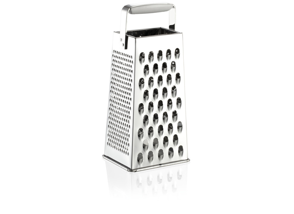 Grof of fijn geraspt, in even grote plakjes gesneden of fijn geschaafd, de 4 raspvlakken kunnen alles aan, komkommers, aardappelen, kaas en alle soorten groente. De ideale allround rasp voor een gevarieerde portie rauwkost. Kunststof handgreep voor een prettige grip. Schoonmaken kan gewoon in de vaatwasser.