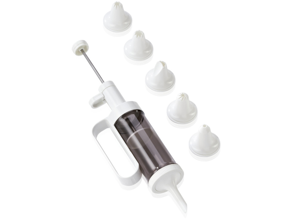 - Praktische garneerspuit met comfortabele eenhandsbediening.