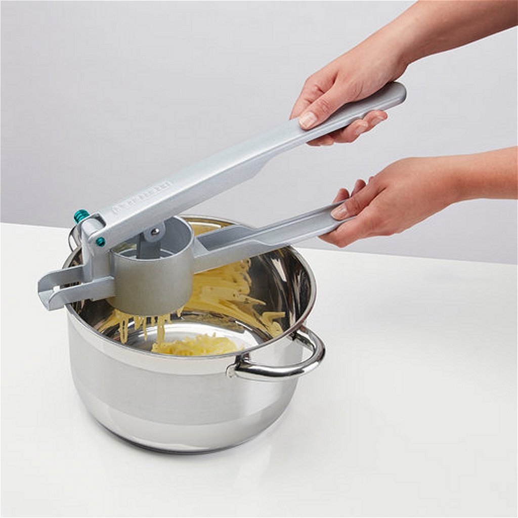 Of het nu gaat om aardappelpuree of andere groentepuree – met depureeknijper kunnen deze gerechten gemakkelijk worden geproduceerd.De keukenhulp bestaat uit een stabiele constructie: het persgegoten zink maakt de pers bijzonder robuust en duurzaam.Het is ideaal voor de eenvoudige productie van aardappelpuree.Dankzij de grote opening is hij gemakkelijk te vullen.Praktische steunhaken zorgen ervoor dat hij de potten stevig vasthoudt zonder om te vallen.Ook uitermate geschikt voor het moeiteloos produceren van spaghetti-ijs, vruchtensappen of fruit- en groentepuree.Na het bereiden van de lekkernijen, is gemakkelijk het weer schoon te maken – met de hand of in de vaatwasser.Omdat depureeknijper kan worden gedemonteerd dankzij de verwijderbare pin.Op deze manier kunnen restanten van het deeg gemakkelijk worden verwijderd.