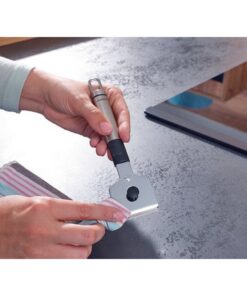 Vervelende korsten op het fornuis?Geen probleem met de praktische schraper van Leifheit.Omdat hiermee zelfs hardnekkig vuil gemakkelijk wordt verwijderd.Vervelend, tijdrovend schrobben behoort tot het verleden – omdat zelfs ingebrande voorwerpen met de schraper van de Leifheit kunnen worden verwijderd.Drie mesjes zijn inbegrepen.De vervangende messen worden in de kop van de schraper bewaard.Ze zijn dus altijd bij de hand.Om ze te beschermen is de schraper voorzien van een mesbeschermer.De schraper is dus veilig in gebruik en zal geen andere voorwerpen krassen als deze in de lade wordt bewaard.De messen kunnen eenvoudig zonder gereedschap worden vervangen,omdat het bovenste kopgedeelte met de hand kan worden losgeschroefd.Nadat de kookplaat is schoongemaakt, kan de schraper ook weer gemakkelijk worden gereinigd.Omdat het alleen hoeft te worden afgeveegd met een vochtige doek.Dankzij het hoogwaardige ontwerp en de ophanglus kan de schraper ook op een haakbeugel worden opgeborgen.