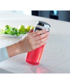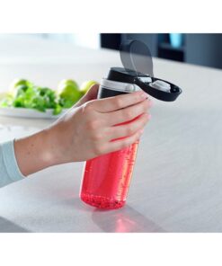 Op weg naar universiteit, school of sport en met maar één hand kunnen drinken? Dat is geen probleem met deFlip tritan drinkfles die met slechts één hand te bedienen is.Omdat hij is voorzien van een praktische drukknop die met de wijsvinger te bedienen is.Er zit ook een slot op het deksel zodat de fles in de tas niet per ongeluk open gaat.Verder zorgt de schroefdop ervoor dat deze 100% lekvrij is.Met behulp van de draagbeugel kan de drinkfles eenvoudig aan een rugzak of tas worden bevestigd.Er zit een softgrip oppervlak op het deksel zodat deze comfortabel in de hand ligt en makkelijk te openen is. Hoogwaardige tritan plastic, dan weet je zeker dat hij helemaal vrij is van vervuilende stoffen.Daarom is de drinkfles ideaal voor kinderen of voor sport.Het is natuurlijk hittebestendig.Daarom kunnen koude en warme dranken in de fles worden gevuld tot een temperatuur van 80 °C.Dankzij het schroefbare filter in het deksel van de drinkfles kunnen kruiden of fruit de inhoud verfijnen zonder het drinken te beïnvloeden.