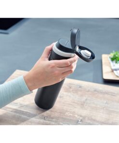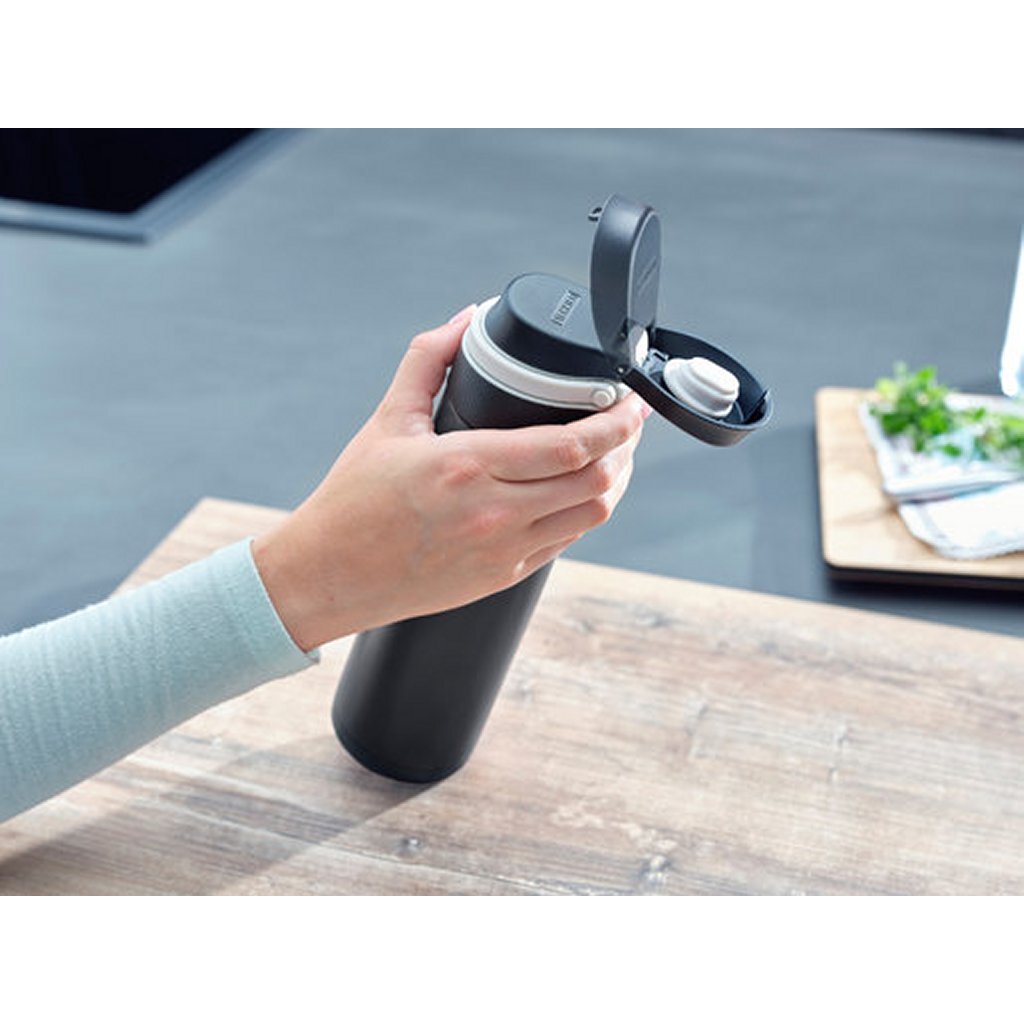Als je op zoek bent naar een lekvrije thermobeker die je veilig in je zak kunt meenemen, dan is de Flip isoleerbeker van Leifheit de juiste keuze.Omdat deze verschillende veiligheidsfuncties heeft die voorkomen dat de inhoud lekt: het deksel is voorzien van een sluiting die 100% lekvrij is.Het slot voorkomt dat het deksel van de isolerende beker vanzelf opengaat.Hij kan dus gemakkelijk overal mee naartoe worden genomen.De drukknop is ook bijzonder praktisch voor onderweg.Hierdoor is het mogelijk om de beker met één hand te openen – en zonder hem neer te hoeven leggen.Het filterelement in het deksel voorkomt dat kruiden, fruit en dergelijke het drinken verstoren.Het filter kan van het deksel worden losgeschroefd en gemakkelijk grondig worden gereinigd.Uiteraard is de beker niet alleen geschikt voor koffie-to-go en andere warme dranken, maar ook voor coole dingen.Dankzij de dubbelwandige isolatie van roestvrij staal houdt het koude dranken tot 18 uur aangenaam koel en warme dranken tot6 uur warm.