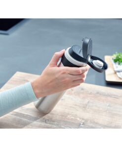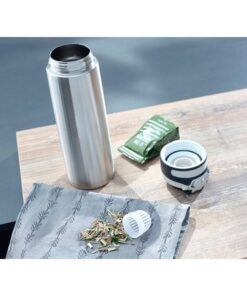 Als je op zoek bent naar een lekvrije thermobeker die je veilig in je zak kunt meenemen, dan is de Flip isoleerbeker van Leifheit de juiste keuze.Omdat deze verschillende veiligheidsfuncties heeft die voorkomen dat de inhoud lekt: het deksel is voorzien van een sluiting die 100% lekvrij is.Het slot voorkomt dat het deksel van de isolerende beker vanzelf opengaat.Hij kan dus gemakkelijk overal mee naartoe worden genomen.De drukknop is ook bijzonder praktisch voor onderweg.Hierdoor is het mogelijk om de beker met één hand te openen – en zonder hem neer te hoeven leggen.Het filterelement in het deksel voorkomt dat kruiden, fruit en dergelijke het drinken verstoren.Het filter kan van het deksel worden losgeschroefd en gemakkelijk grondig worden gereinigd.Uiteraard is de beker niet alleen geschikt voor koffie-to-go en andere warme dranken, maar ook voor coole dingen.Dankzij de dubbelwandige isolatie van roestvrij staal houdt het koude dranken tot 18 uur aangenaam koel en warme dranken tot6 uur warm.