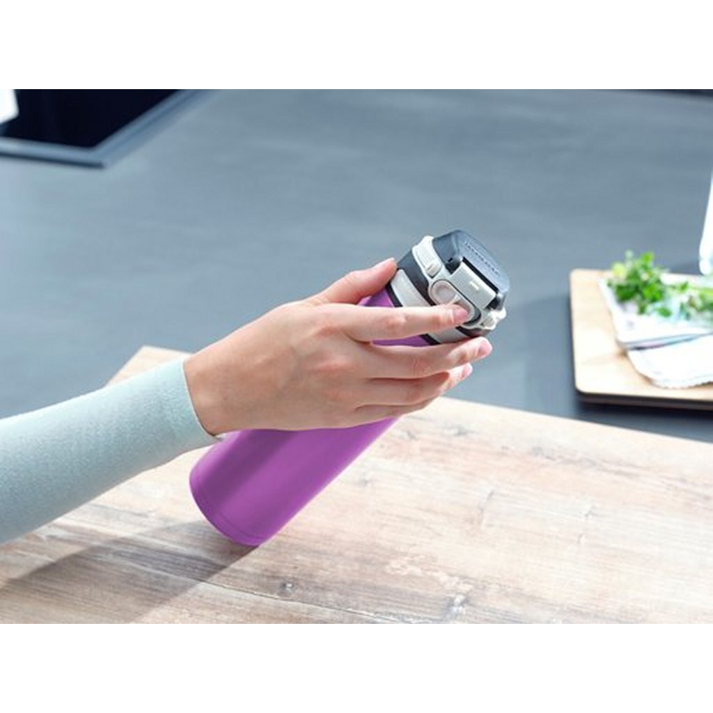 Als je op zoek bent naar een lekvrije thermobeker die je veilig in je zak kunt meenemen, dan is de Flip isoleerbeker van Leifheit de juiste keuze.Omdat deze verschillende veiligheidsfuncties heeft die voorkomen dat de inhoud lekt: het deksel is voorzien van een sluiting die 100% lekvrij is.Het slot voorkomt dat het deksel van de isolerende beker vanzelf opengaat.Hij kan dus gemakkelijk overal mee naartoe worden genomen.De drukknop is ook bijzonder praktisch voor onderweg.Hierdoor is het mogelijk om de beker met één hand te openen – en zonder hem neer te hoeven leggen.Het filterelement in het deksel voorkomt dat kruiden, fruit en dergelijke het drinken verstoren.Het filter kan van het deksel worden losgeschroefd en gemakkelijk grondig worden gereinigd.Uiteraard is de beker niet alleen geschikt voor koffie-to-go en andere warme dranken, maar ook voor coole dingen.Dankzij de dubbelwandige isolatie van roestvrij staal houdt het koude dranken tot 18 uur aangenaam koel en warme dranken tot6 uur warm.