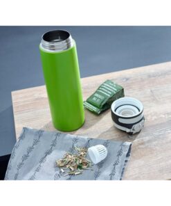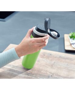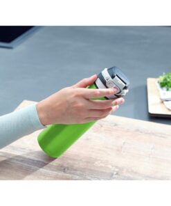 Als je op zoek bent naar een lekvrije thermobeker die je veilig in je zak kunt meenemen, dan is de Flip isoleerbeker van Leifheit de juiste keuze.Omdat deze verschillende veiligheidsfuncties heeft die voorkomen dat de inhoud lekt: het deksel is voorzien van een sluiting die 100% lekvrij is.Het slot voorkomt dat het deksel van de isolerende beker vanzelf opengaat.Hij kan dus gemakkelijk overal mee naartoe worden genomen.De drukknop is ook bijzonder praktisch voor onderweg.Hierdoor is het mogelijk om de beker met één hand te openen – en zonder hem neer te hoeven leggen.Het filterelement in het deksel voorkomt dat kruiden, fruit en dergelijke het drinken verstoren.Het filter kan van het deksel worden losgeschroefd en gemakkelijk grondig worden gereinigd.Uiteraard is de beker niet alleen geschikt voor koffie-to-go en andere warme dranken, maar ook voor coole dingen.Dankzij de dubbelwandige isolatie van roestvrij staal houdt het koude dranken tot 18 uur aangenaam koel en warme dranken tot6 uur warm.