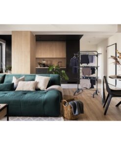 Het ruimtewonder van Leifheit in modern en aantrekkelijk zwart! Met zijn afmetingen van max. 76,5 x 70 cm past de droogtoren in een smalle badkamer, op een klein balkon of in een smalle gang. Drie boven elkaar liggende droogniveaus bieden een drooglengte van 42 meter en ruimte voor maximaal 4 wasmachineladingen. Omdat de droogroosters afzonderlijk kunnen worden ingeklapt, kan de torendroger halfzijdig worden gebruikt en makkelijk tegen een muur worden geplaatst. Dankzij de 6 geïntegreerde, soepel lopende wielen kan hij bij volle belading in alle richtingen worden verplaatst. De wielen hebben een 360° draaikoppeling die rondom bewogen kan worden. Dedroogtoren is ideaal voor gezinnen met beperkte droogruimte. Na gebruik kan je de 420 makkelijk inklappen: plat opgevouwen past hij moeiteloos tussen de kast en de muur. Dankzij de 2 zijdelingse kledinghangerhouders biedt de droogtoren extra droogruimte. De hoogte is 1,45 meter.
