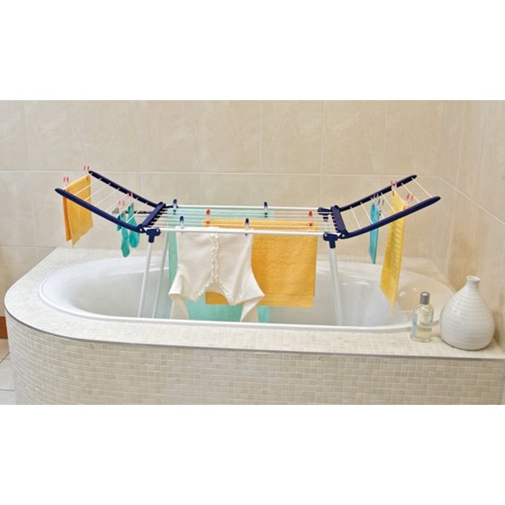 Past moeiteloos in ieder gangbaar ligbad. Smalle U-poten met een breedte van slechts 44 cm. De afgeronde antislipdoppen zorgen voor stabiliteit en beschermen het bad.Dit is een bijzonder smal droogrek, maar het biedt toch het gebruiksgemak dat je van een Pegasus-droogrek mag verwachten. De uitklapbare 93 cm hoge vleugels zijn optimaal voor het drogen van langere stukken wasgoed. Met uitgeklapte vleugels biedt het droogrek 12 meter drooglengte. Dankzij de stabiele poten en de stevige droogstangen hangt het droogrek niet door, ook niet als het vol zware was hangt. Ingeklapt is droogrek Pegasus 120 Solid Compact gemakkelijk op te bergen. Alle onderdelen van het droogrek zijn roestvrij.