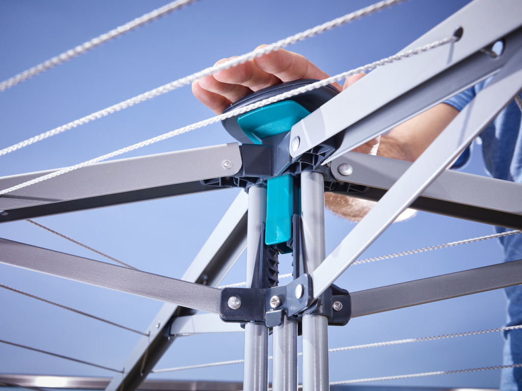 - Met stabiele waslijnarmen en breed standvlak, zodat de droogmolen stevig staat