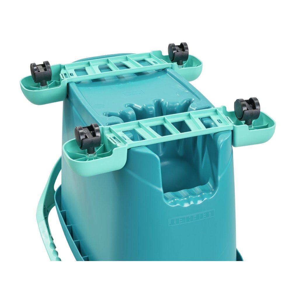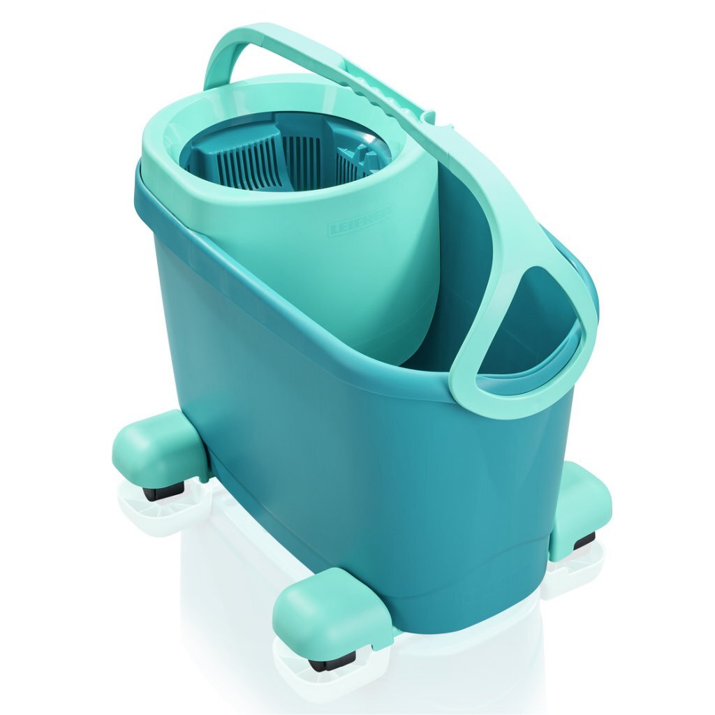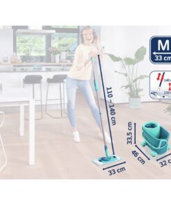 Voor een zeer hoog schoonmaakcomfort zorgt het 360°-cardanscharnier van de Leifheit dweil, omdat het dweilen in golvende lijnen en op moeilijk toegankelijke plaatsen mogelijk maakt. Omdat de vloerplaat comfortabel met de voet kan worden ontgrendeld, is moeizaam bukken niet meer nodig. De steel uit de vloerwisser-set CLEAN TWIST M Ergo mobile is in hoogte verstelbaar van 110-140 cm en maakt rugvriendelijk werken mogelijk. De nieuwe insteek-klittenbandcombinatie van de wisserovertrek maakt eenvoudig bevestigen en verwijderen van de overtrek mogelijk en geeft tegelijk een goede houvast tijdens het centrifugeren. Voor een comfortabel transport van het dweilsysteem van Leifheit zorgen de rolwagen met de 360°-wielen en het hengsel aan de emmer. Bovendien is de emmer uitgerust met een steelhouder en een schenktuit om het water schoon weg te kunnen gieten. De geoptimaliseerde kogellagerpositie van de vloerwisser-set CLEAN TWIST M Ergo mobile maakt heel stil centrifugeren mogelijk.