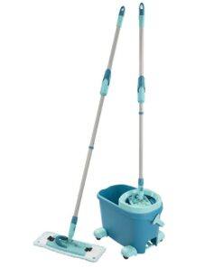 Het is afgelopen met bukken om de wisserovertrek uit te wringen, natte handen en inspannend werken want bij Leifheit is de vloerwisser-set CLEAN TWIST System M Ergo mobile te koop. De set vergemakkelijkt het schoonmaken enorm en is bovendien perfect geschikt voor het reinigen van kwetsbare houten vloeren aanbevolen door de Vereniging van de Duitse Parketindustrie. Want in de emmer van de dweilset van Leifheit is een uitwringfunctie geïntegreerd, waarmee de overtrek snel en heel makkelijk tot de gewenste vochtigheid kan worden gedoseerd en gecentrifugeerd. En dat helemaal zonder hem aan te hoeven raken. De handen blijven met de Leifheit vloerwisser-set CLEAN TWIST M Ergo mobile droog en vooral schoon. Ze komen noch bij het uitspoelen, noch bij het uitwringen of dweilen in aanraking met het vuile water.