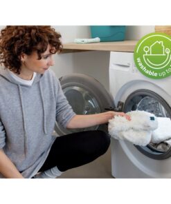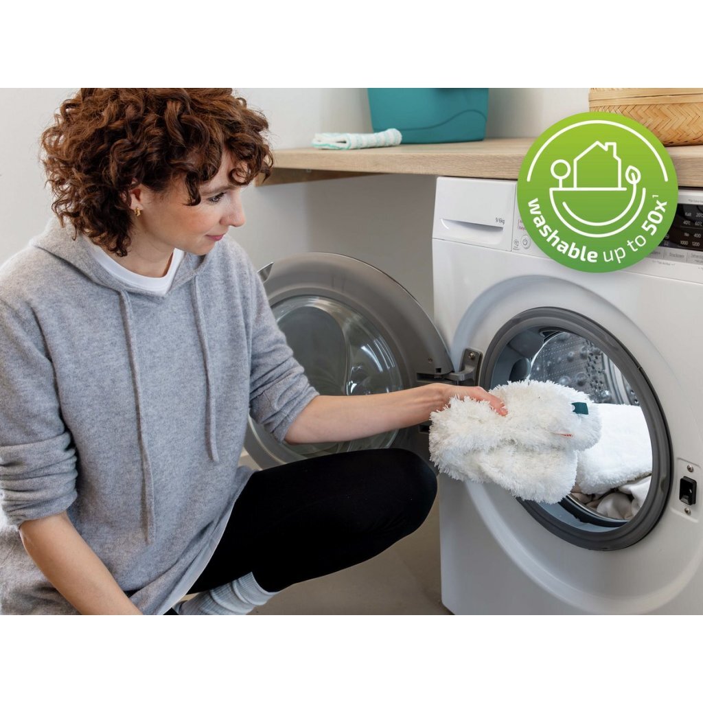 De textiel 360°-overtrek van microvezel kan 50 keer op 40°C gewassen worden in de wasmachine. Zo bespaar je niet alleen geld, maar doe je ook iets goeds voor het milieu, want je gebruikt geen wegwerpproducten. Na een wasbeurt blijven de afstofprestaties hetzelfde het wasbare textieldeel van de plumeau neemt stof, haren en allergenen uitstekend op en houdt ze vast in de vezels, zonder opwervelen en zonder verspreiden van vuil. De plumeau reinigen is heel gemakkelijk: wassen en vervolgens opschudden en goed laten drogen, zodat de pluim zijn zachte, flexibele volumineuze vorm weer terugkrijgt. Geschikt voor moeiteloos afstoffen van grote en hoger gelegen oppervlakken, en neemt bijzonder veel stof op. Een brede en een smalle kant, voor grondig schoonmaken van grotere oppervlakken en smalle tussenruimtes. Met de handige drukknopbevestiging is het textieldeel gemakkelijk los te maken van de handgreep, en weer net zo makkelijk aan te brengen.