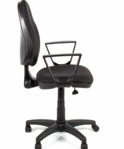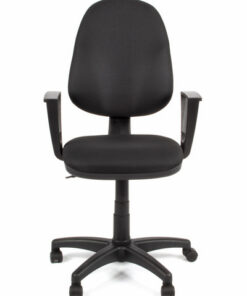 Bureaustoel Tiger 01/CP met permanente armleuningen. In hoogte verstelbare rugleuning en met een draaiknop is de weerstand te regelen. Hierdoor is deze bureaustoel geschikt is voor maximaal 8 uur zitcomfort. De stoel is vervaardigd van metaal en heeft een kunststof afwerking. Het onderstel is gemaakt van kunststof en voorzien van 5 wielen die geschikt zijn voor zachte vloeren. De polyester zitvlak en rugleuning (46 x 39 cm) is een synthetische vezel die licht, duurzaam, vormvast, kreukvrij en isolerend is en heeft een slijtvastheid van 85.000 zitcycli. Door de hendel onder de zitting is de luchtveer in hoogte individueel in te stellen van 44 tot 57 centimeter. De bureaustoel heeft een maximaal draagvermogen van 100 kg en weegt 10,7 kg. Kleur stof zwart/zwart. De bureaustoel wordt geleverd met 2 jaar garantie en is voorzien van Arbo norm EN1335. Made in Italy.