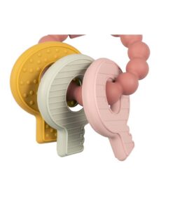 De komst van de eerste tandjes is een mijlpunt voor jouw baby, maar niet altijd even prettig! Om de pijn te verlichten heeft Little Dutch een multifunctionele bijtring ontworpen in de vorm van een sleutelbos. Het is een speeltje maar biedt ook troost en helpt de nieuwe tandjes door te komen. Het bijtspeeltje heeft verschillende texturen waardoor jouw baby genoeg te ontdekken heeft. Speciaal ontworpen dat het makkelijk vast te pakken is voor baby handjes! In zachte aardetint, zand en roze. Geschikt voor kinderen vanaf 4 maanden.