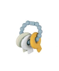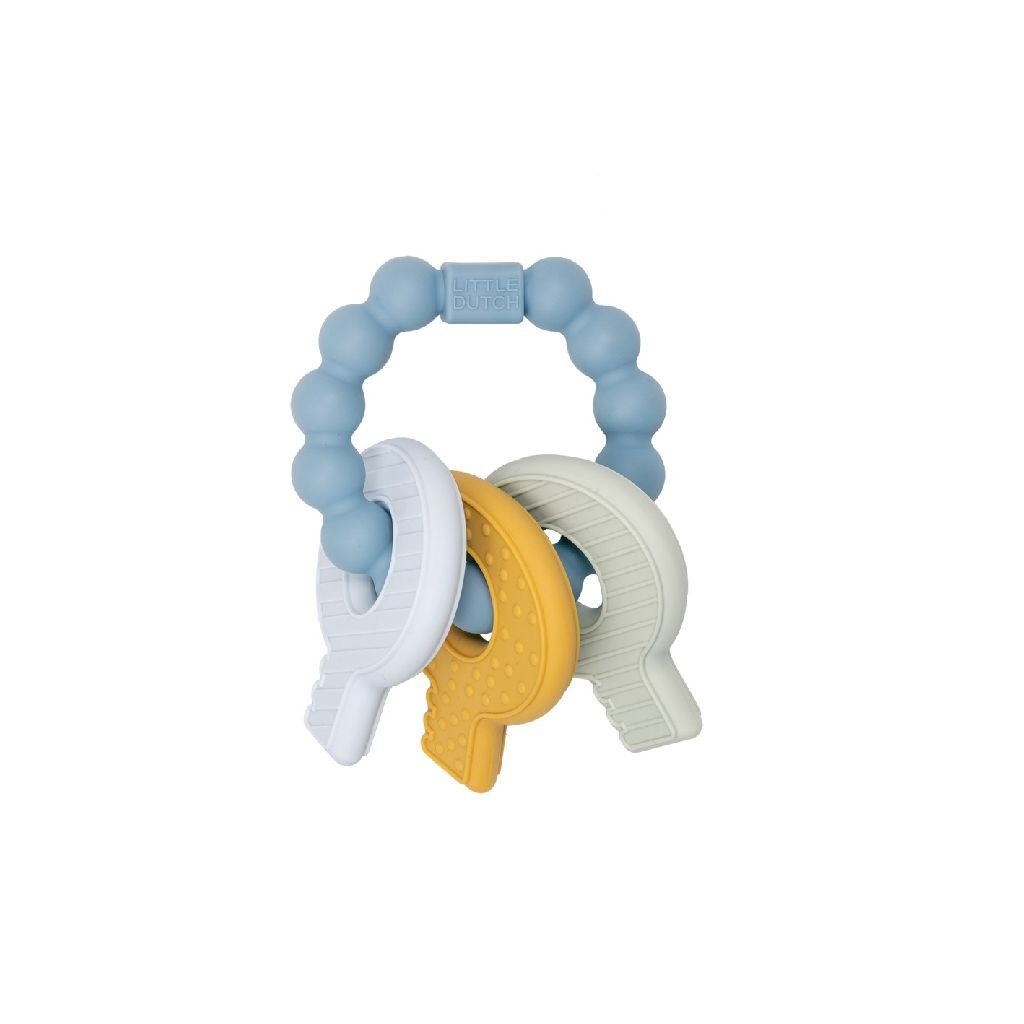 De komst van de eerste tandjes is een mijlpunt voor jouw baby, maar niet altijd even prettig! Om de pijn te verlichten heeft Little Dutch een multifunctionele bijtring ontworpen in de vorm van een sleutelbos. Het is een speeltje maar biedt ook troost en helpt de nieuwe tandjes door te komen. Het bijtspeeltje heeft verschillende texturen waardoor jouw baby genoeg te ontdekken heeft. Speciaal ontworpen dat het makkelijk vast te pakken is voor baby handjes! In zachte tinten blauw, zand en groen. Geschikt voor kinderen vanaf 4 maanden.