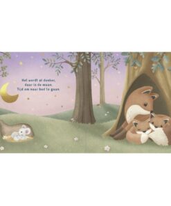 Het wordt donker, daar is de maan. Tijd om naar bed te gaan. Dag klein slakje, dag konijn. Oogjes dicht en droom maar fijn. Alle dieren in het bos zijn klaar om te gaan slapen. Jij ook? Een lief verhaaltje op rijm om voor te lezen voor het slapengaan. De maan en sterren in goudfolie geven het boek een extra luxe uitstraling.