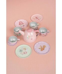 Zullen we samen theedrinken? Met dit schattige tinnen theeservies speelt je kind een geweldig rollenspel. Dit Fairy Garden theesetje prikkelt de fantasie van kinderen en stimuleert de fijne motoriek. De set bestaat uit vier kleine theekopjes, vier schoteltjes, vier gebaksbordjes en een theepot met deksel. Let op: berg het product na gebruik droog op. Geschikt voor kinderen vanaf 36 maanden.