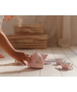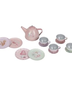 Zullen we samen theedrinken? Met dit schattige tinnen theeservies speelt je kind een geweldig rollenspel. Dit Fairy Garden theesetje prikkelt de fantasie van kinderen en stimuleert de fijne motoriek. De set bestaat uit vier kleine theekopjes, vier schoteltjes, vier gebaksbordjes en een theepot met deksel. Let op: berg het product na gebruik droog op. Geschikt voor kinderen vanaf 36 maanden.