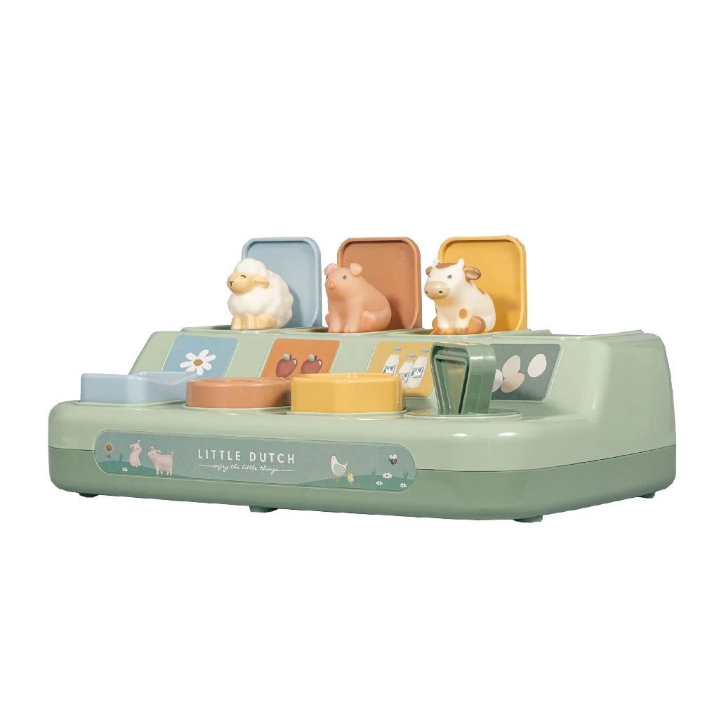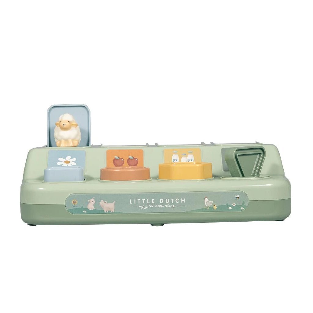 Bevorder de verbeelding, creativiteit en motoriek van je kindje met dit Little Dutch Farm spelletje. Train spelenderwijs kleur- en vormherkenning. Druk of draaien op de knoppen en HOPPA er verschijnt een diertje uit het Little Dutch Farm thema. Geschikt voor kinderen vanaf 12 maanden.