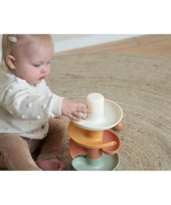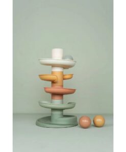 Laat de bal maar rollen! De spiraaltoren van Little Dutch zorgt voor eindeloos veel speelplezier. Deze kleurrijke set bestaat uit 5 subtiel gekleurde delen die jouw kleintje gemakkelijk op elkaar stapelt. Laat de ballen een voor een op de bovenste laag vallen en kijk hoe ze achter elkaar naar beneden rollen en slingeren. De spiraaltoren draagt bij aan de ontwikkeling van de hand-oog coördinatie en leert kleintjes over oorzaak en gevolg, waarmee het zowel leuk als leerzaam spelen is. Bij de spiraaltoren zitten standaard 3 lichte en gemakkelijk vast te pakken ballen in verschillende kleuren die bij beweging een geluidje maken. Dit speelgoed is uitgevoerd in de kenmerkende Little Dutch kleuren oudroze, roze, lichtroze, groen en okergeel. De afmeting is: 18 x 18 x 30 cm. Geschikt voor kinderen vanaf 10 maanden.