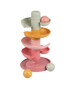 Laat de bal maar rollen! De spiraaltoren van Little Dutch zorgt voor eindeloos veel speelplezier. Deze kleurrijke set bestaat uit 5 subtiel gekleurde delen die jouw kleintje gemakkelijk op elkaar stapelt. Laat de ballen een voor een op de bovenste laag vallen en kijk hoe ze achter elkaar naar beneden rollen en slingeren. De spiraaltoren draagt bij aan de ontwikkeling van de hand-oog coördinatie en leert kleintjes over oorzaak en gevolg, waarmee het zowel leuk als leerzaam spelen is. Bij de spiraaltoren zitten standaard 3 lichte en gemakkelijk vast te pakken ballen in verschillende kleuren die bij beweging een geluidje maken. Dit speelgoed is uitgevoerd in de kenmerkende Little Dutch kleuren oudroze, roze, lichtroze, groen en okergeel. De afmeting is: 18 x 18 x 30 cm. Geschikt voor kinderen vanaf 18 maanden.