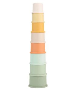 1,2,3 hoe hoog wordt de toren?! Deze set met bekers daagt je peuter uit om ze één voor één op elkaar te stapelen. Hoe groot zal de vreugde zijn als de toren helemaal staat? En hoe leuk is het om de toren weer om te gooien! Uren speelplezier gegarandeerd. Met de vier vrolijke tinten zullen de bekers je kleintje zeker vermaken. De 8 stapelbekers hebben een nummer aan de bovenkant en passen gemakkelijk in elkaar om te voorkomen dat de toren te snel valt. Je kleintje leert over cijfers en ontwikkelt fijne motoriek. Stapel en maak de toren in de box, op de vloer of in de badkuip of zandbak. Dankzij het veelzijdige materiaal kan het overal worden gebruikt. Plaats de kleine bekers in elkaar om ze eenvoudig op te bergen. De toren bestaat uit 8 stapelbekers, variërend in diameter tussen 6 en 9,5 cm en de toren is in totaal 43 cm hoog als je alle bekers op elkaar zet. Geschikt voor kinderen vanaf 12 maanden.