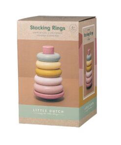 Laat je kindje ringen sorteren en stapelen, met deze supermooie stapelringen van Little Dutch. Dit speelgoed is uitgevoerd in prachtige kleuren, die mooi in je interieur passen: diverse tinten roze, okergeel en zachtgroen. Er zijn 5 verschillende formaten ringen om mee te stapelen, variërend in diameter tussen 8,5 en 13,5 cm. Totale hoogte van het artikel: 20,5 cm. Extra uitdaging: de basis is half rond, waardoor hij een beetje wiebelt op de grond. Goed voor de ontwikkeling van de motoriek! De stapelringen zijn gemaakt van ABS, wat gemakkelijk vast te pakken is voor kleine kinderhandjes. Geschikt voor kinderen vanaf 6 maanden.