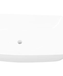 Deze rechthoekige wasbak is gemaakt van eersteklas keramiek en vormt een stijlvolle toevoeging aan elke badkamer of toilet. De hoogglans afwerking zorgt ervoor dat het licht er mooi op weerkaatst. Het fonteintje heeft een afvoer gat met een diameter van 4,5 cm. Let op: de afvoer en kraan zijn niet inbegrepen.
