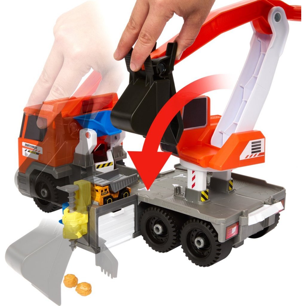 Matchbox Action Drivers bouwvrachtwagen met kiepwagen en graafmachine. Geschikt voor kinderen vanaf 3 jaar.