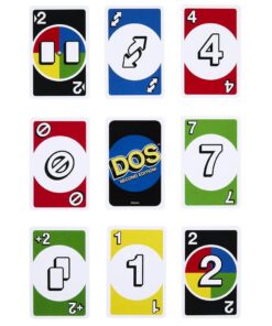 Mattel UNO DOS Second Editionis geïnspireerd op het beroemde UNO-spel en minstens net zo leuk! Het kaartspel is snel en eenvoudig, leuk voor het hele gezin!Het spel speel je met twee stapels, combineer kleuren en tel de punten op. Het doel is om al je kaarten zo snel mogelijk kwijt te raken. Geschikt voor kinderen vanaf 7 jaar.