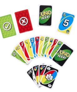 Het UNO Flex kaartspel is gebaseerd op hetbekende leuke UNO kaartspel, maar dan met een flexibele draai. Met speciale kaarten kun je een kaartkleur wijzigen om een match te krijgen. Je kunt zo bijvoorbeeld van een Rood 4 een Groen 4 maken. Power kaarten en Flex actiekaarten maken het spel nog spannender. Dit spel is ideaal voor gezinnen, feestjes en spelletjesavonden, en is een leuk cadeau voor alle UNO fans en kaartliefhebbers van 7 jaar en ouder. Het spel is te spelen vanaf 2 tot 8 spelers.