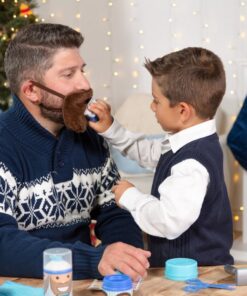 Met deze speelgoed scheerbenodigdheden kun je knippen, bijknippen, scheren en stylen als een echte kapper! Je kunt de zachte baard met verstelbare bandjes stylen en bijknippen. Voor een traditionele scheerbeurt gebruik je de scheercrème in een potje en laat je deze schuimen met de zachte scheerkwast. Speel vervolgens dat je de baard bijknipt met de speelgoedschaar. Voor een modernere scheerbeurt is er een pompbusje met scheerschuim, een tondeuse die trilt als je aan het lipje trekt (geen batterijen nodig) en een rollend scheermesje voor een glad eindresultaat. Kinderen kunnen hun uiterlijk bekijken in het uitklapbare handspiegeltje, terwijl ze de laatste hand leggen aan het resultaat met de pommade in het potje, de kam en de borstel. Inclusief een herbruikbare, dubbelzijdige activiteitenkaart. Geschikt voor kinderen vanaf 3 jaar.