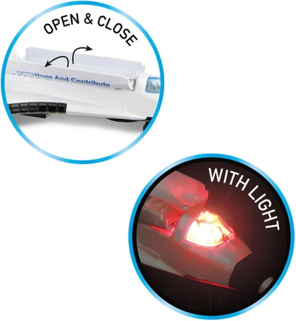 Waan je in de ruimte met deze space shuttle met brandstoftank! Met dit ruimteschip met zowel licht- als geluidseffecten, vlieg je razendsnel de ruimte in. De brandstoftank zorgt ervoor dat je extra ver kan vliegen! Ben jij geschikt als astronaut? De space shuttle werkt op 3 stuks batterijen (niet inbegrepen).
