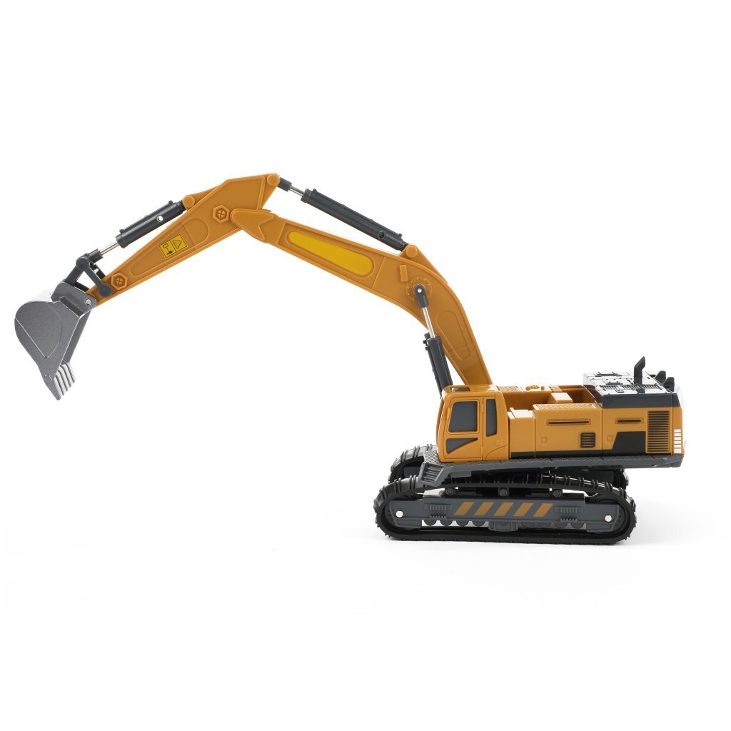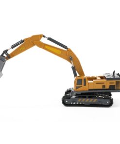 Metal World geel-zwarte graafmachine met rupsbanden.De graafmachine is gemaakt van staal, wat zorgt voor meer evenwicht tijdens de verschillende bewegingen die de graafmachine kan maken. Schaal: 1:55.